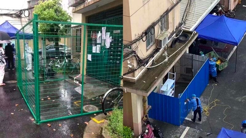 但中国的封城,是彻底的封家封户,把每个人都封在你自己的住所,完全不能离开。在一些地方,政府甚至会把居民的房门从外面锁死、焊死,把整个居民区用铁丝网围起来。而且近期上海的情况表明,封控期间,市民连上网购物、出门看医生都受到了很大限制。食物基本上只能靠政府分配,分配的吃完,你只能饿着。即使是对那些得了急病的人,临盘待产的孕妇,医院也同样要求执行繁琐的核酸检测,否则就不进行救治。从而导致很多无辜的人遭受折磨,甚至死去。